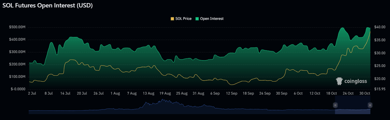 SOL open interest nears $500 million