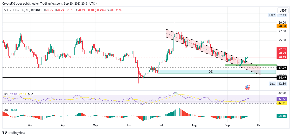 With momentum indicators such as the Relative Strength Index (RSI) and the Awesome Oscillator (AO) indicating rising momentum, Solana price could continue north.