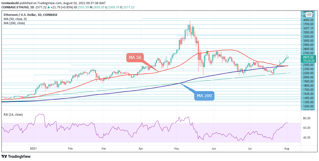 In recent days, Ethereum (ETH) has rallied to reclaim the $2,500 handle while targeting further gains towards the $3,000 psychological handle.