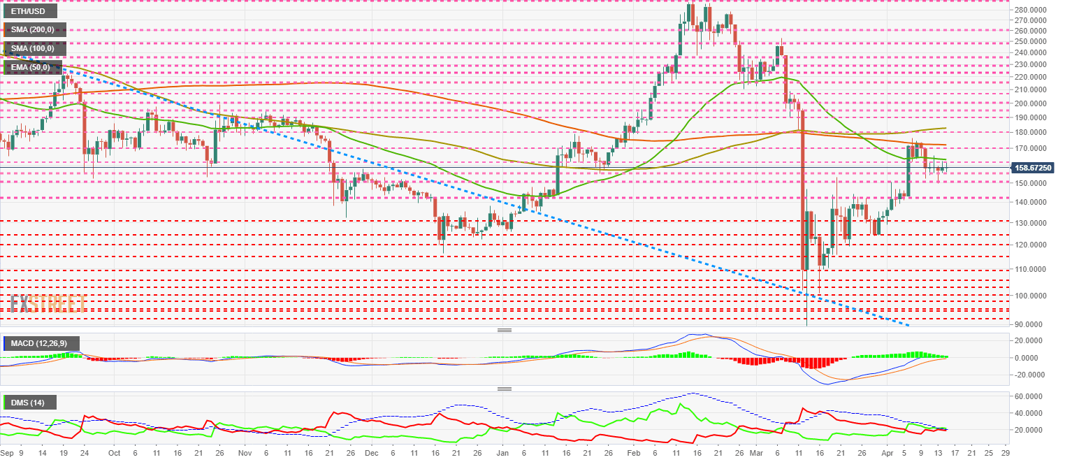 The ETH/USD pair is currently trading at $158.7 and is showing some difficulty in moving forward in light of the 50-day exponential moving average. The main moving averages move within a range of $163 to $182.