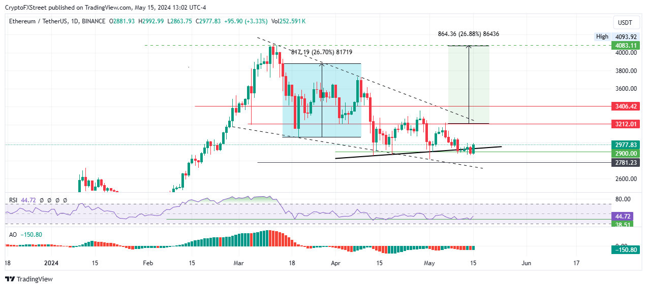 - Ethereum defends $2,900, but 26% upside potential will only be activated after breaching $3,212.