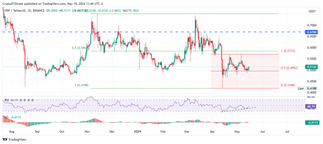 Ripple price remains range-bound as XRP bulls continue to sit on their hands. This is seen with the RSI stuck below the mean level of 50 since April 11. If the RSI records a higher high within the upper segment of the range, Ripple price could extend the climb.
