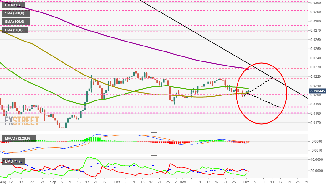 The DMI on the daily chart shows how the bears lose the support of the ADX line as the bulls head higher to meet them. This confrontation could mark the future not only of the Ethereum against Bitcoin but for the entire crypto market for 2020.