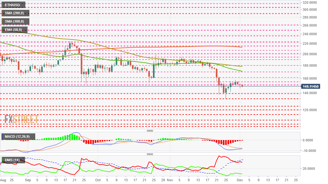 ETH/USD is currently trading at the $149.1 price level, slightly below the $150 psychological level.