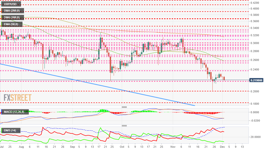 XRP/USD is currently trading at the $0.2201 price level and clings to the $0.22 support level.