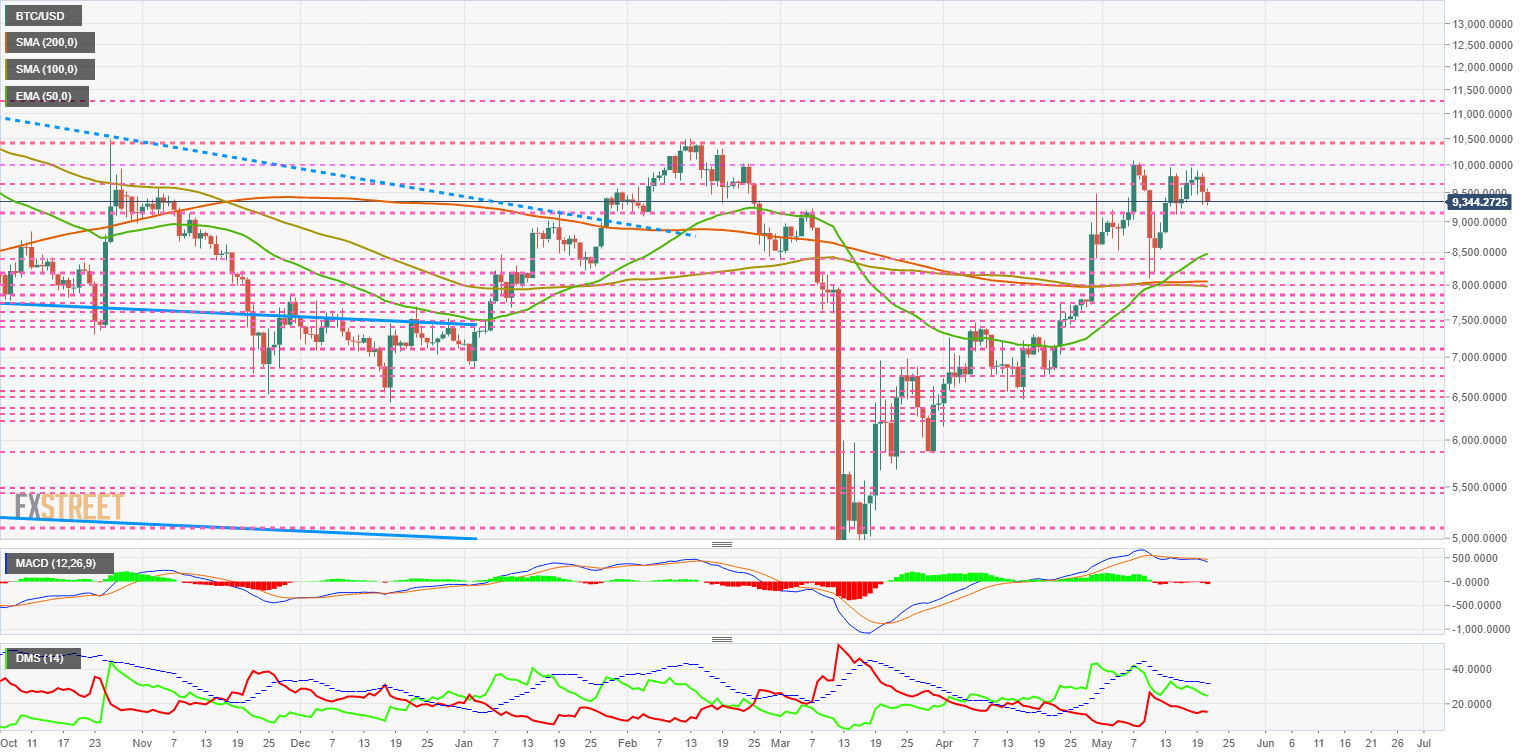 The BTC/USD pair is currently trading at $9344 and continues to follow the sales that were made yesterday during the US session. The major moving averages are still at the $8000 level, except for the 50-day exponential moving average which can support the price at the $8500 level.