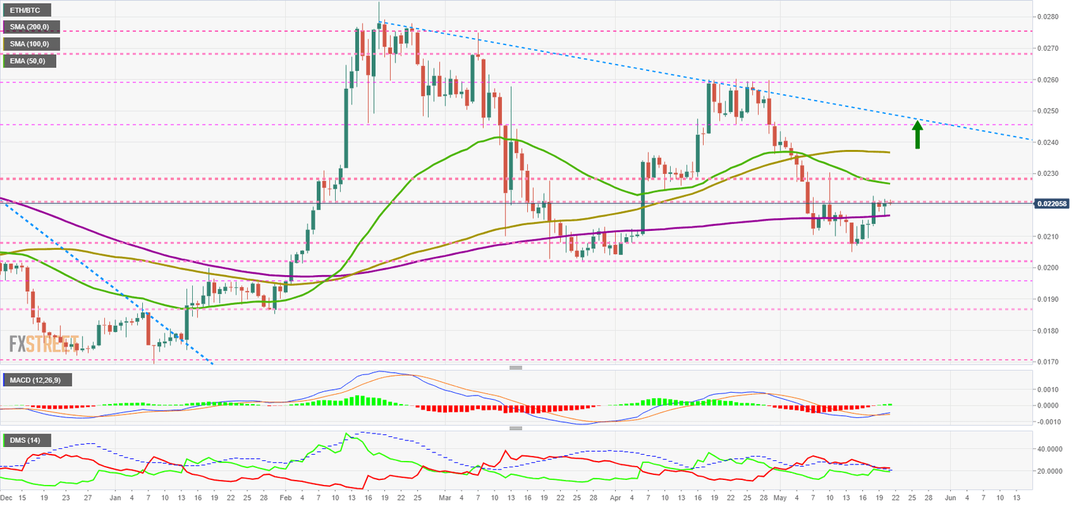 The ETH/BTC pair is currently trading at the price level of 0.022, only one-hundredth of a point below the price congestion resistance level of 0.0221. The critical resistance level is at 0.0245, and a breakout would take the valuation of the Ethereum to levels not seen since the summer of 2019.