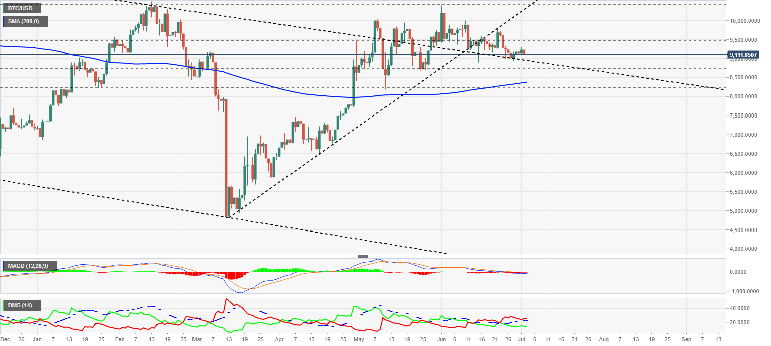 Above the current price, the first resistance level is at $9500, then the second at $10350 and the third one at $10400.