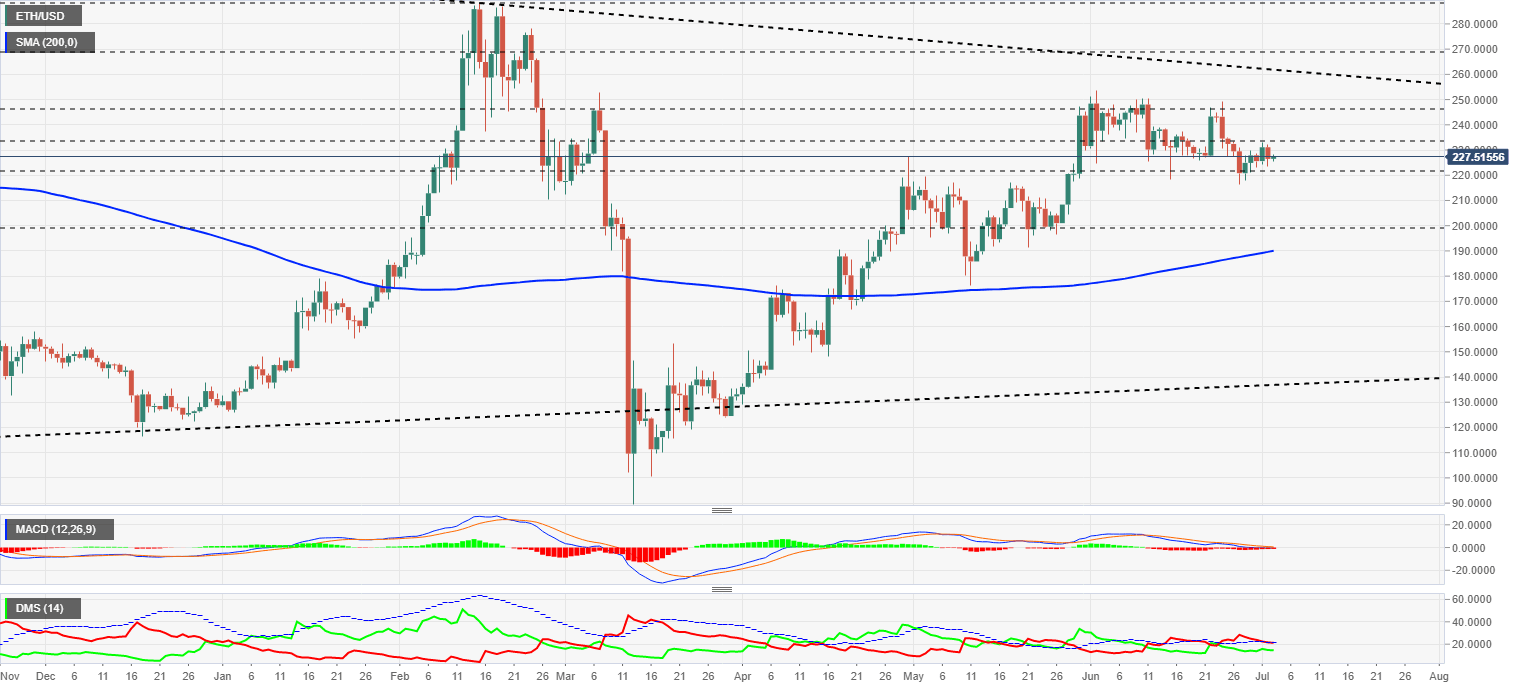The ETH/USD pair is currently trading at $227.4 while remaining in the current trading congestion.