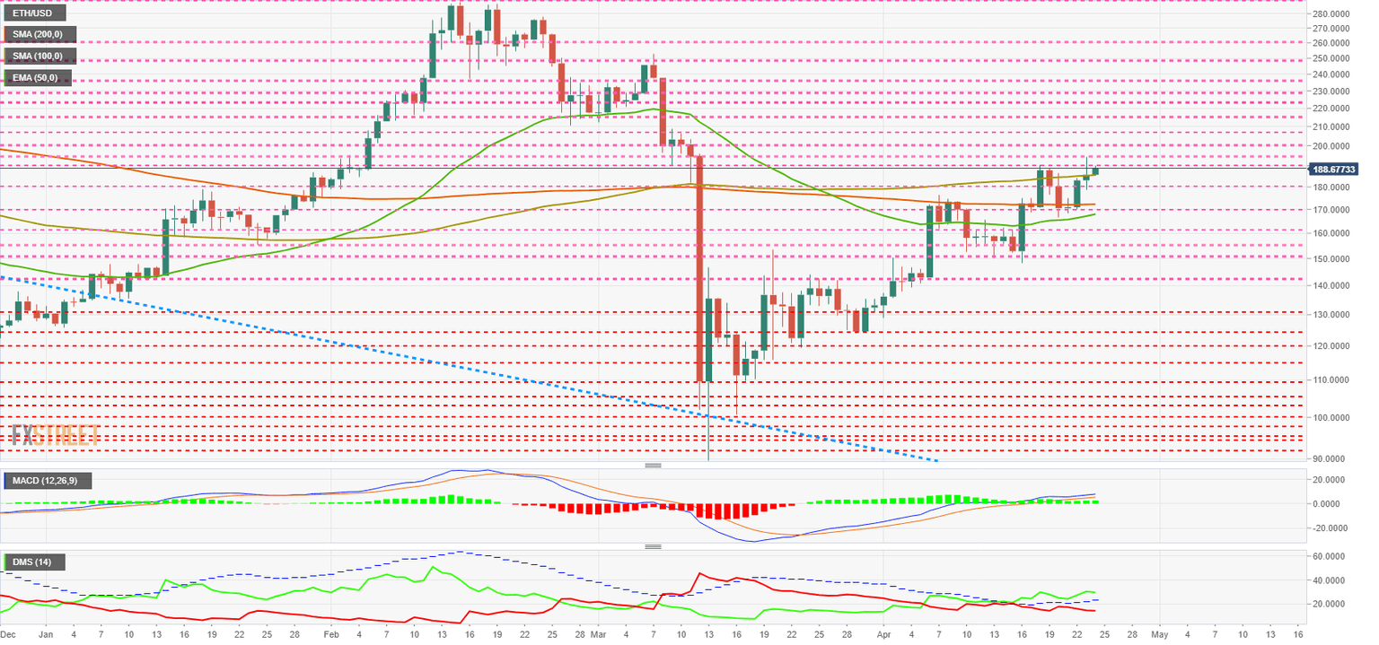 Above the current price, the first resistance level is at $190, then the second at $195 and the third one at $200.