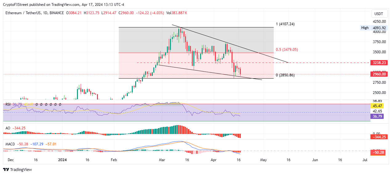 Ethereum price is trading with a bearish bias, an outlook seen across the market. If Bitcoin price crashes further, ETH could follow, slipping below the bottom of the market range at $2,850. In a dire case, the altcoin could drop to provide another buying opportunity around $2,750.