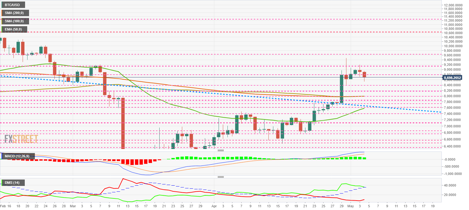 Below the current price, the first support level is at $8400, then the second at $8200 and the third one at $8000.