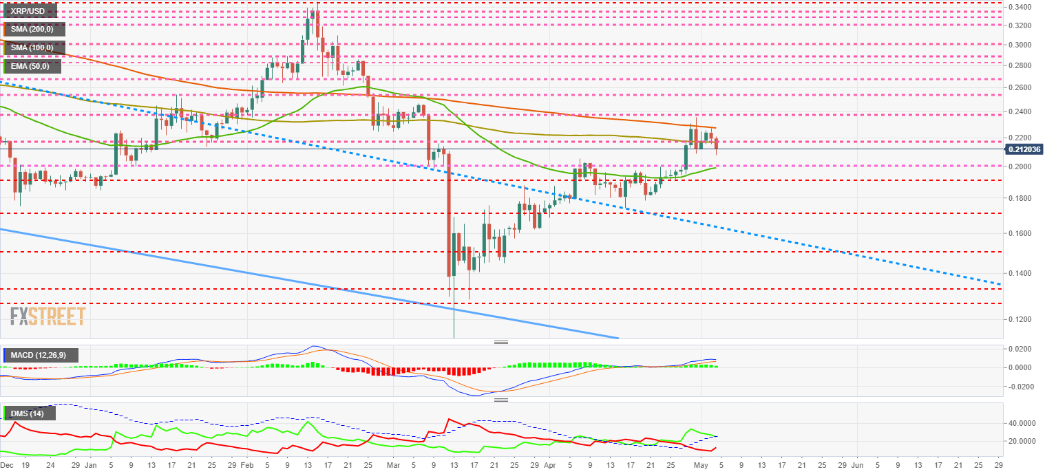 The XRP/USD pair is currently trading at the price level of $0.212 and sends a message of weakness as it has not been able to break out of the major moving averages. Negative news coming from Ripple Ltd, and almost all of them are related to XRP. The disappointing sales figures for XRP among its corporate customers raise doubts about the potential for implementation and projection of the Ripple Ltd token.