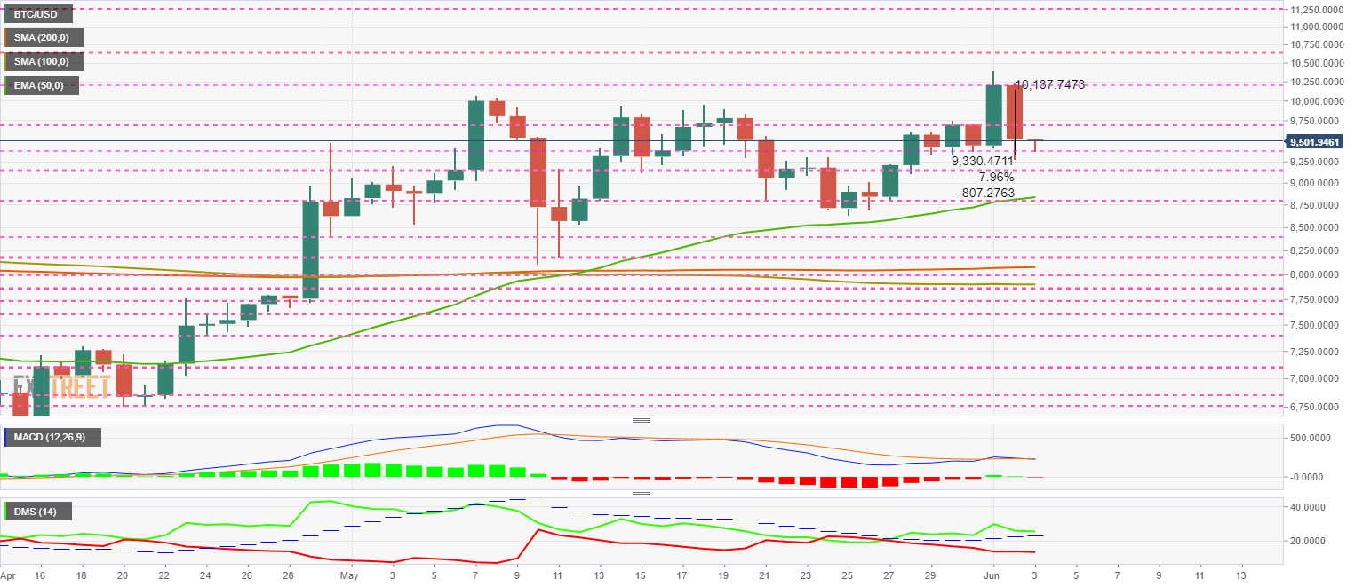The BTC/USD pair is currently trading at $9501, the same level where yesterday's carnage ended. BTC has little margin under it, with very fragile support at $9378.