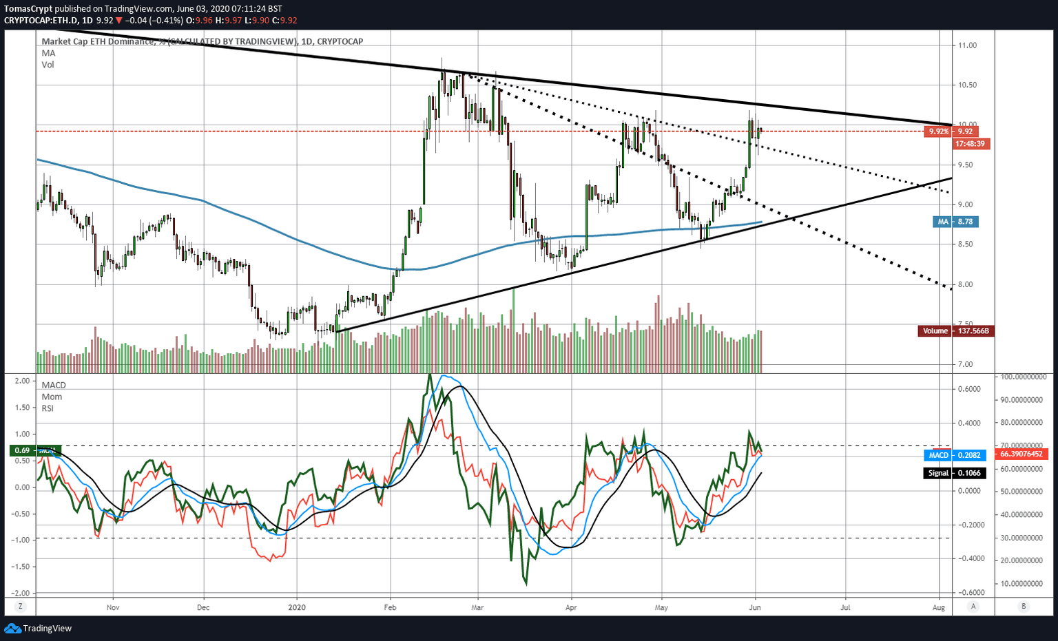 The Ether's dominance chart shows that the project led by Vitalik Buterin is still in the optimal position to overcome the last resistance that separates it from the fully bullish area on the chart.