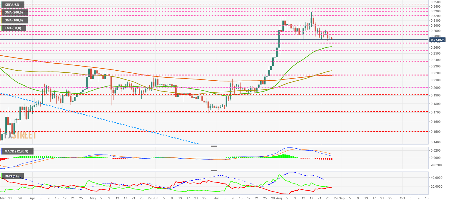 XRP/USD is currently trading at $0.2739 and joins the game of exhausting traders' patience by doing nothing.