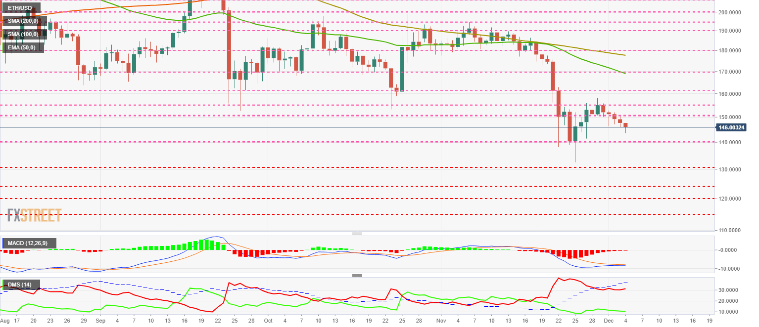 ETH/USD is currently trading at the $146 price level and has chained five consecutive days of declines. The indicator structure proposes short term increases so that the current declines could be searches for better buy entry levels.