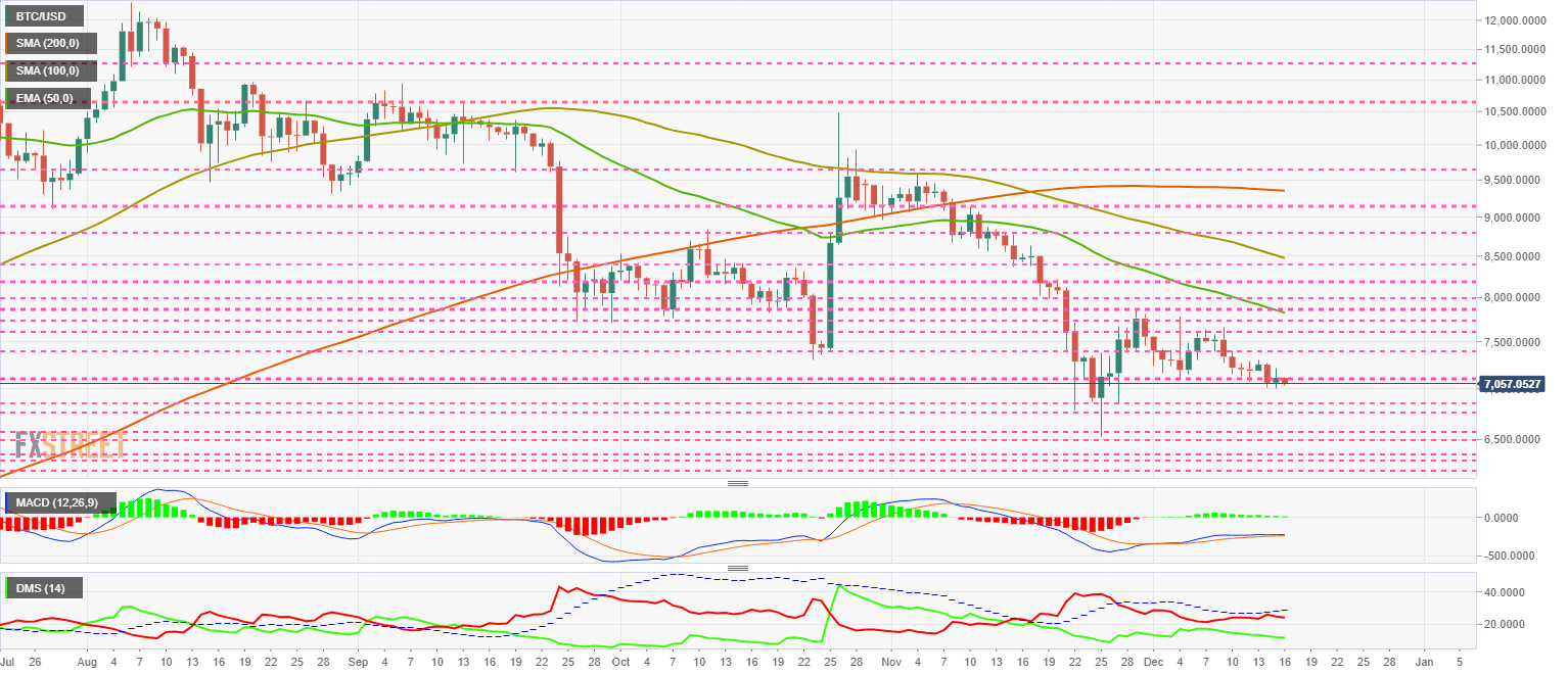 The BTC/USD pair is currently trading at the price level of $7057 (-0.79%), warning of a possible trip to relative lows in the $6,500 zone.