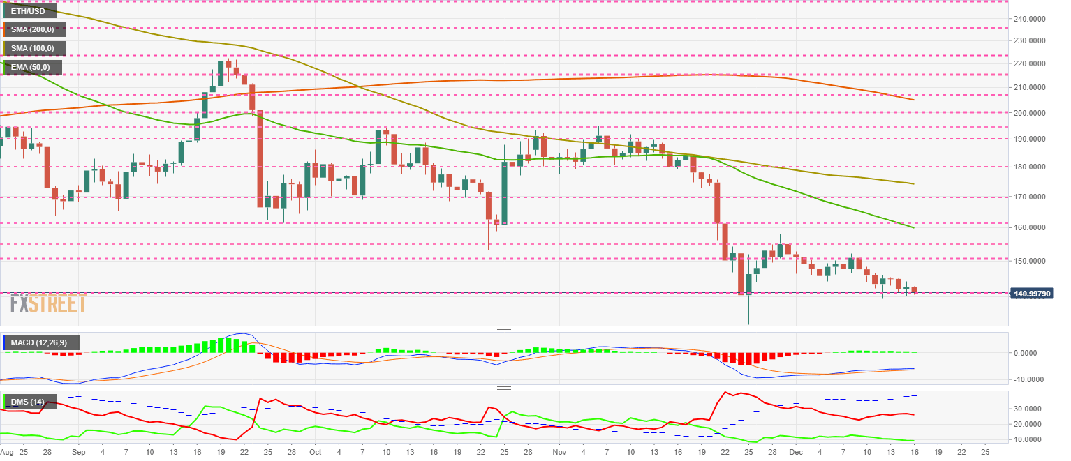 The ETH/USD pair is currently trading at the price level of $140.99 (-1.10%) and follows the bearish path of Bitcoin. Resistance at $150 now seems distant, and a visit to the $120 zone seems likely.