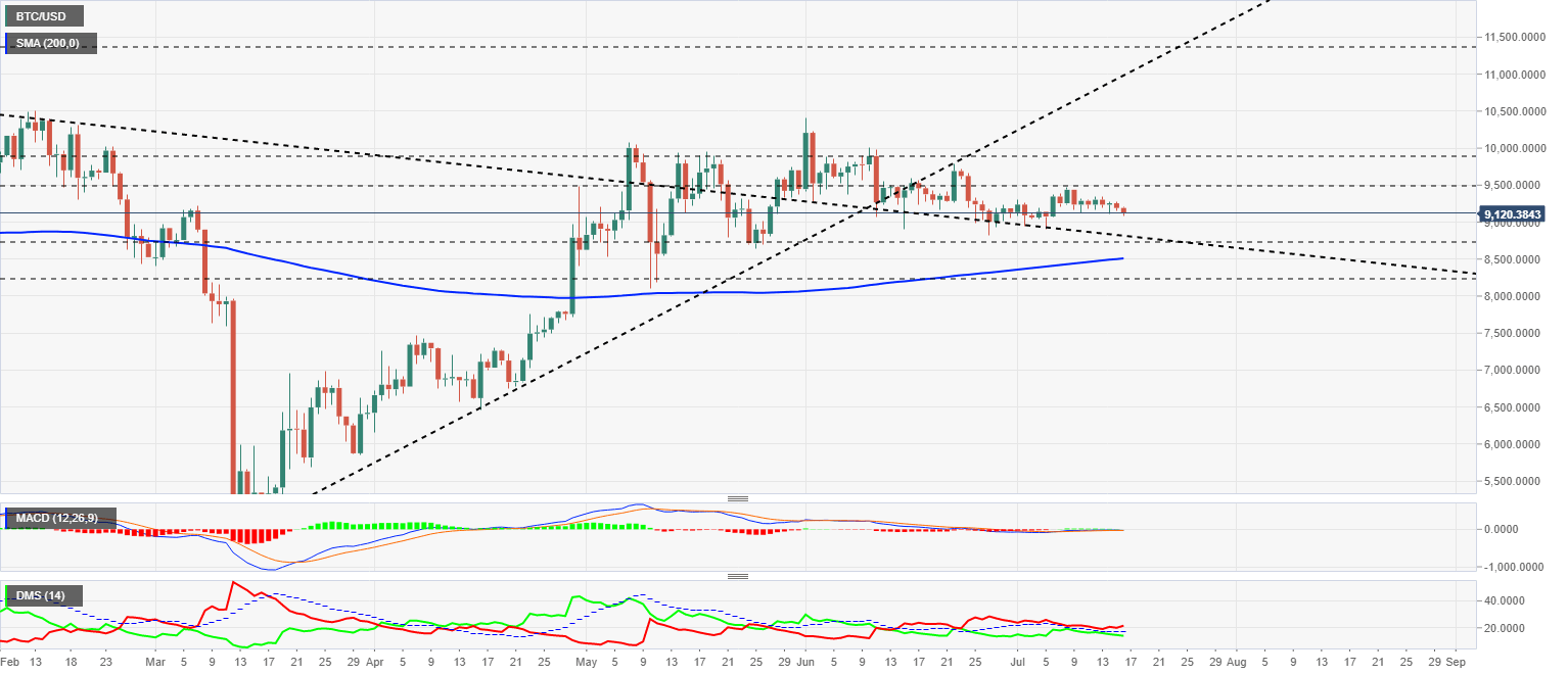 Above the current price, the first resistance level is at $9,200, then the second at $9,650 and the third one at $10,400.