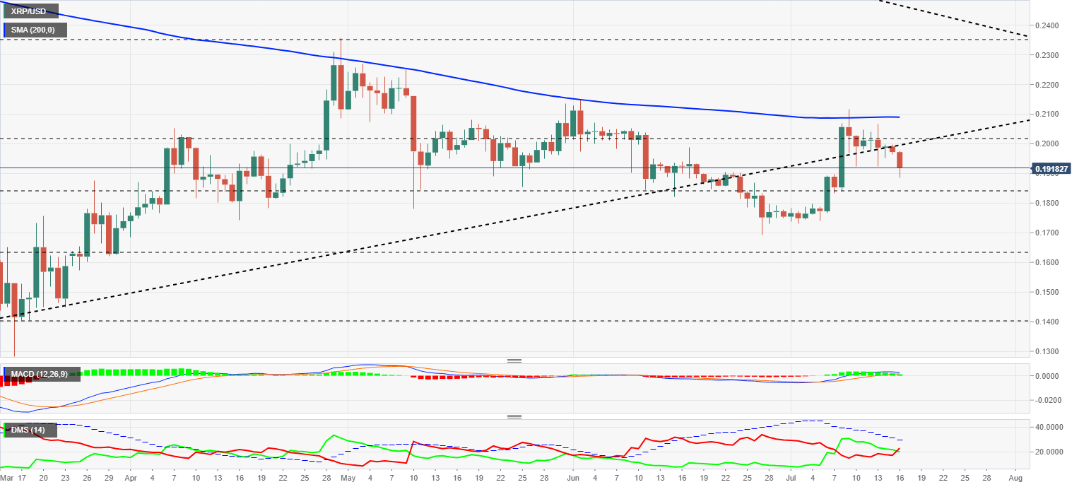 The MACD on the daily chart loses its bullish profile and goes down to look for support at the zero levels of the indicator. If the Ripple finds that support, it may have a chance to avoid the disaster.