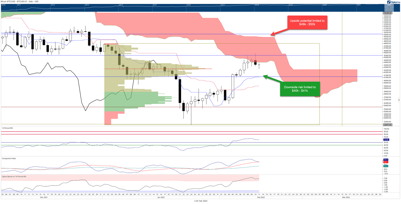 The two scenarios for Bitcoin price are either a sideways trading range between $43,000 and $44,000 or a return to the Tenken-Sen at $41,000. $41,000 should be the maximum downside risk until next week. If there is bullish participation over the weekend, the upside potential will likely be limited to the top of the Ichimoku Cloud near the $49,000 to $50,000 value areas.