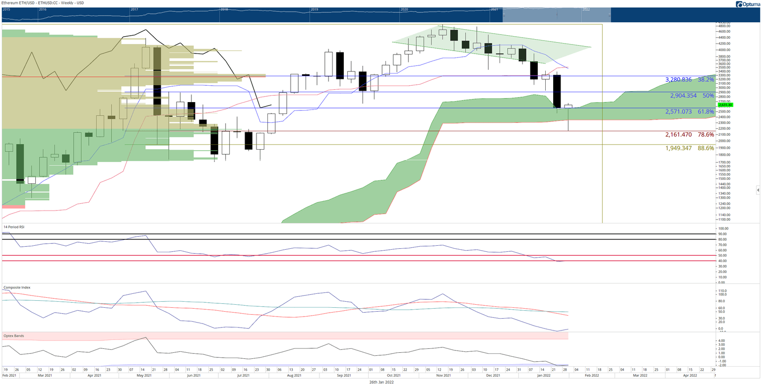 A weekly close below the bottom of the Cloud at or below $2,300 would invalidate any bullish outlook.