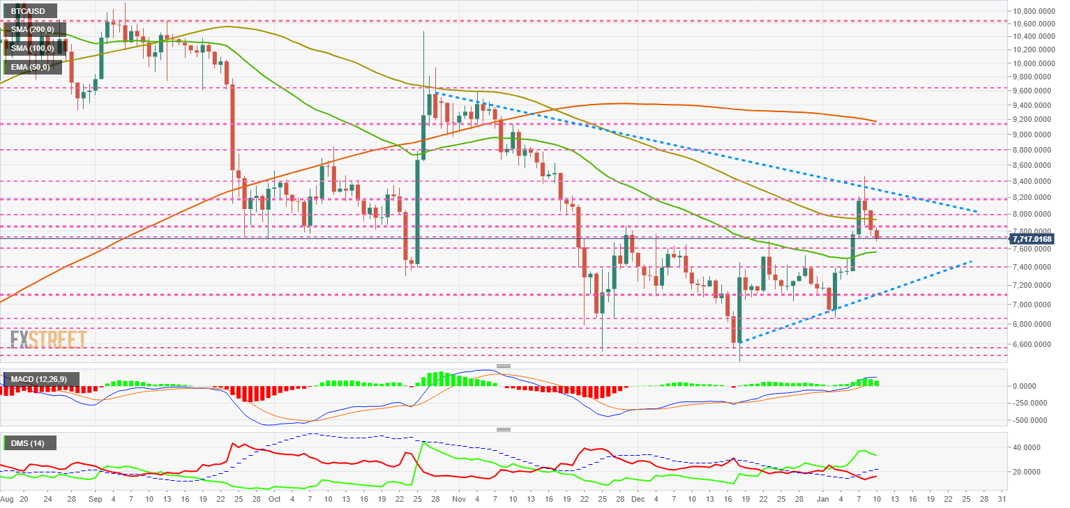 Below the current price, the first support level is at $7,600, then the second at $7,400 and the third one at $7,130.