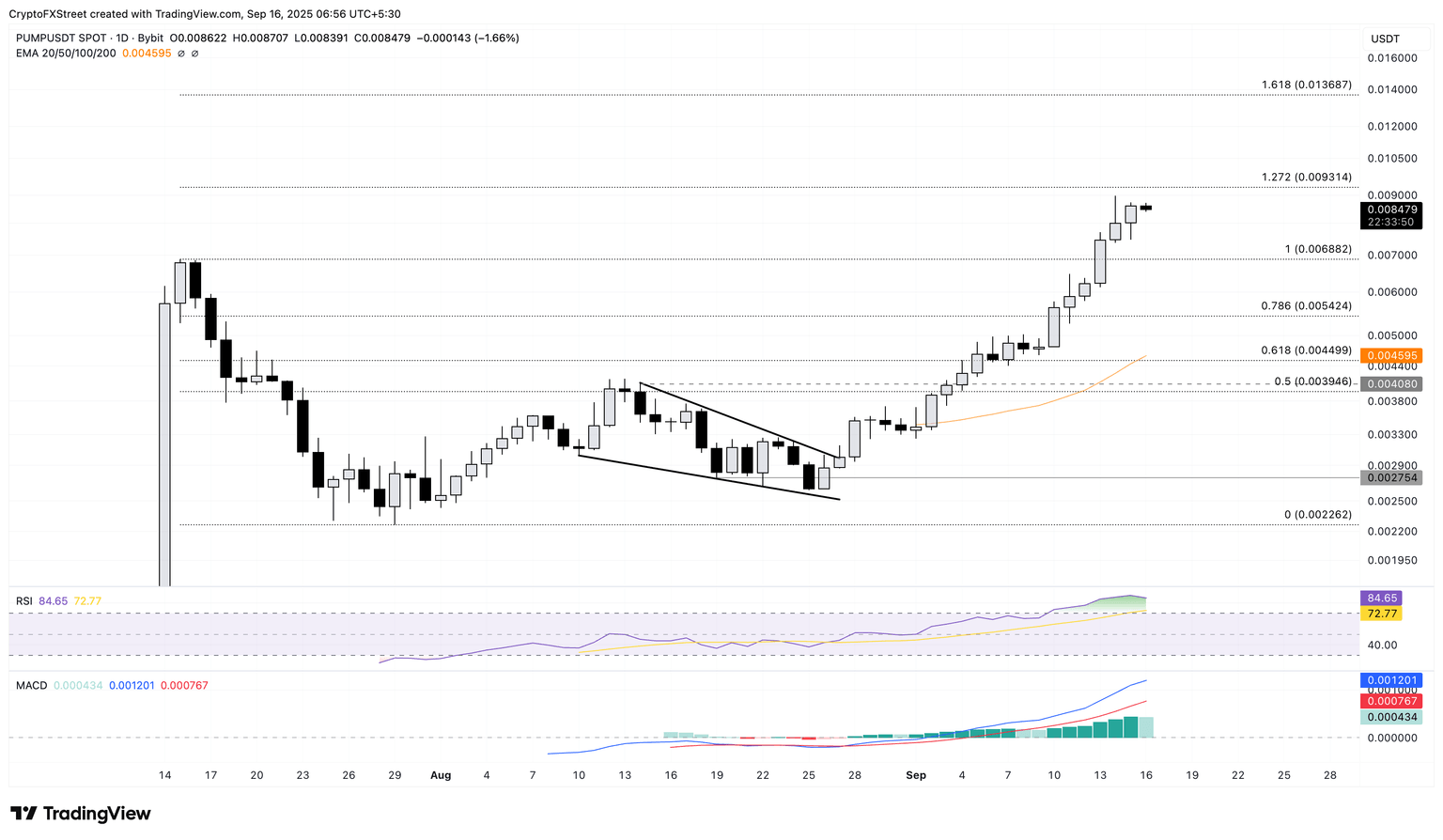 PUMP/USDT daily price chart.