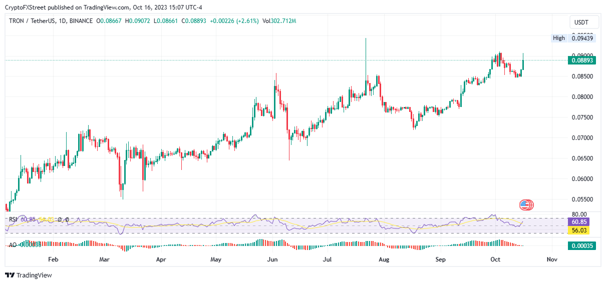 The performance of the Tron network’s powering token, TRX, also adds to the bullishness, with the altcoin recording higher highs and higher lows, which identify it as being in the midst of a concerted uptrend.