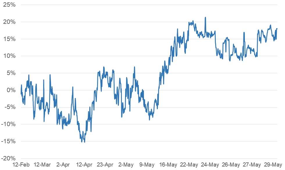 A 25% delta skew oscillating between a negative 10%, and a positive 10% is usually deemed neutral. This balanced situation held until May 16, as Bitcoin lost the critical $47,000 support, which had held for 76 days.