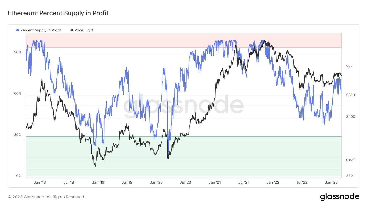 More downside cues for Ether come from one of Ethereum’s widely monitored on-chain metrics that tracks the percentage of ETH’s circulating supply in profit.