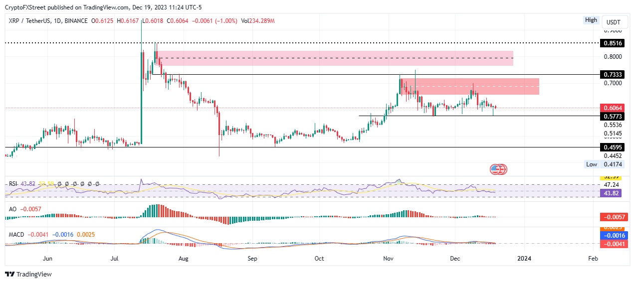 - From a technical standpoint, XRP could rise drop 5% to lose the $0.5773 support, unless bulls push 15% north.