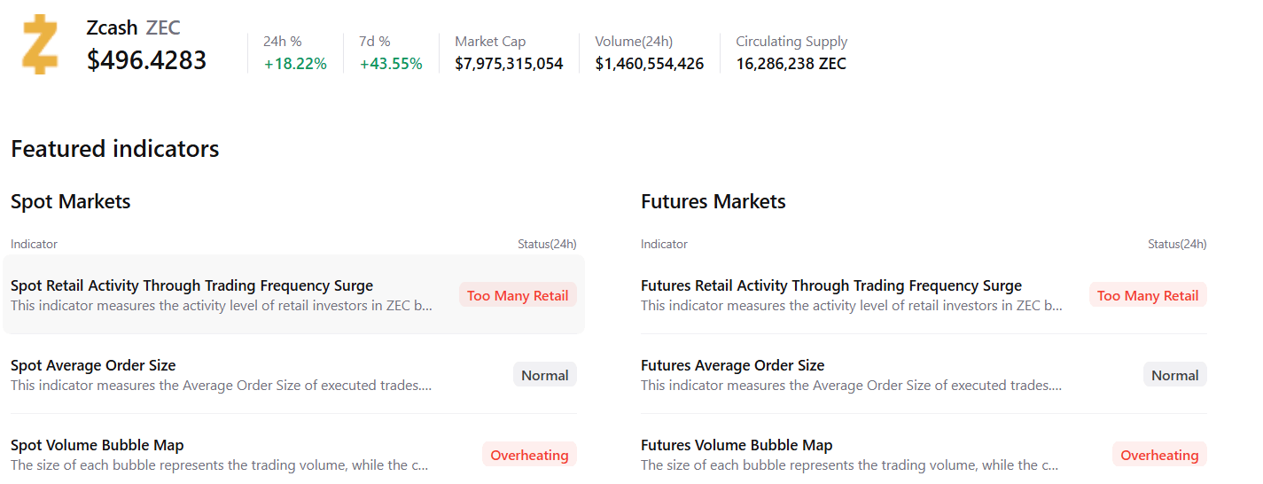 Despite the bullish outlook for ZEC, CryptoQuant’s summary data shows some signs of concern to watch for. Both the spot and futures markets are showing signs of retail activity potentially overheating.