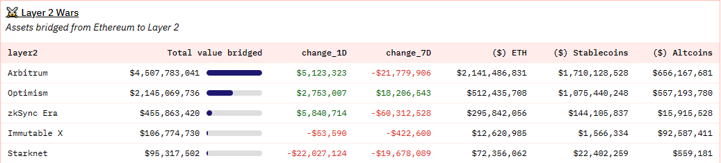 The rug pull has tarnished the reputation of zkSync Era, threatening its position in the race for the best Ethereum L2 network. As reported, zkSync currently ranks third after Arbitrum (ARB) and Optimism (OP), with a total value bridge of $455,863,420 at the time of writing.