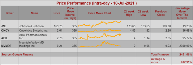 Like MVMD discussed earlier, JNJ’s relevance to a biotech-focused portfolio has heightened interest, given the recent move by several EU countries to order 40-million additional COVID-19 vaccines from the company. This is in addition to the 200-million doses already ordered by the EU. The icing on the cake, for any biotech portfolio containing JNJ, is the fact that the company is among the few to also support a single-dose COVID-19 vaccine. Given the logistic challenges the world has experienced with multiple-dose vaccines – especially in underserved and remote communities – having a single-dose solution bodes well for long-term holders of this stock.