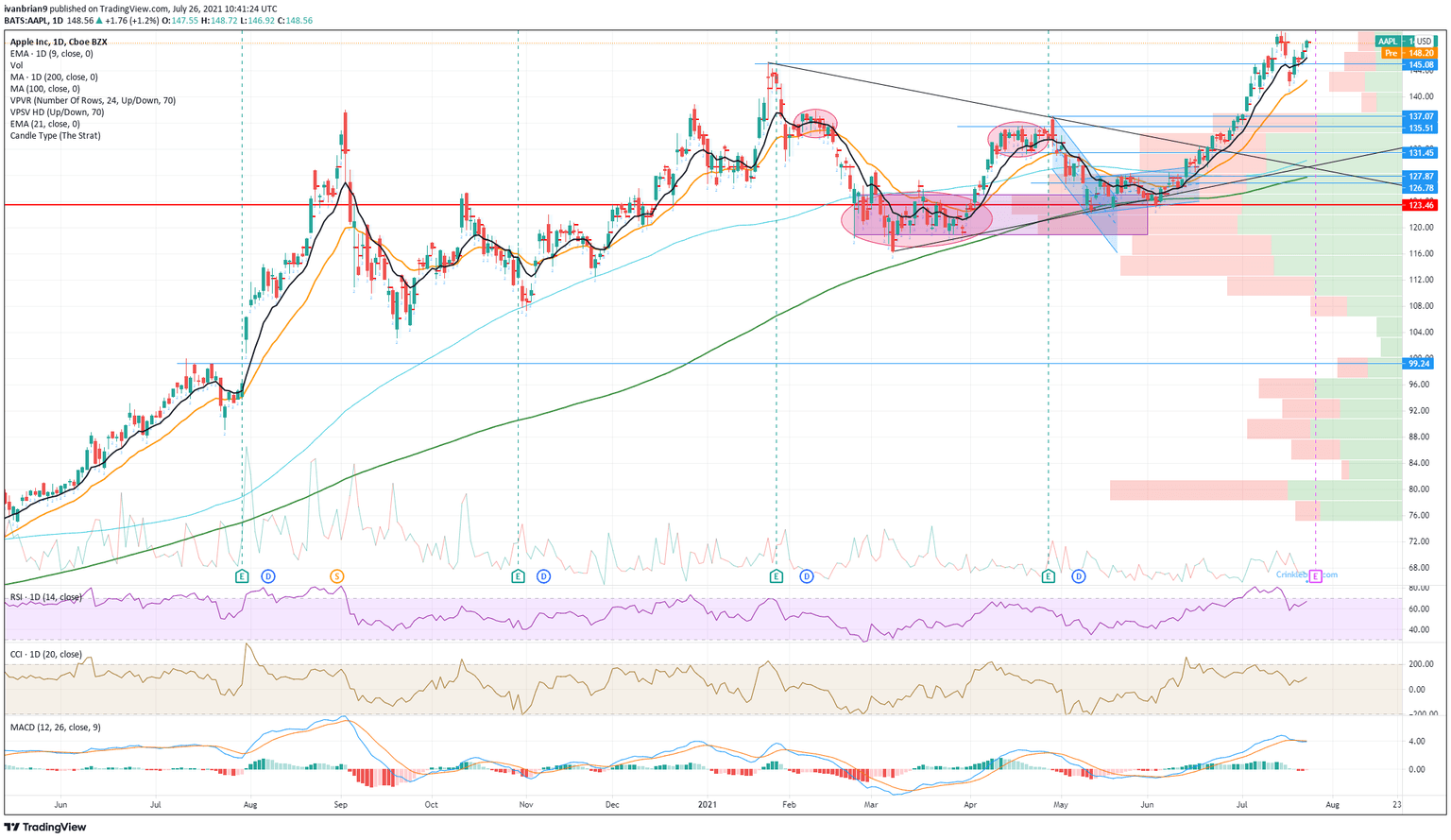 Apple stock is poised to reach near all-time highs on Monday ahead of results to the end of June being released on Tuesday. The trend so far in 2021 is for most companies to smash results and make us wonder just how out of touch those Wall Street analysts really are. How can you consistently get it so wrong and still get paid so much?!
