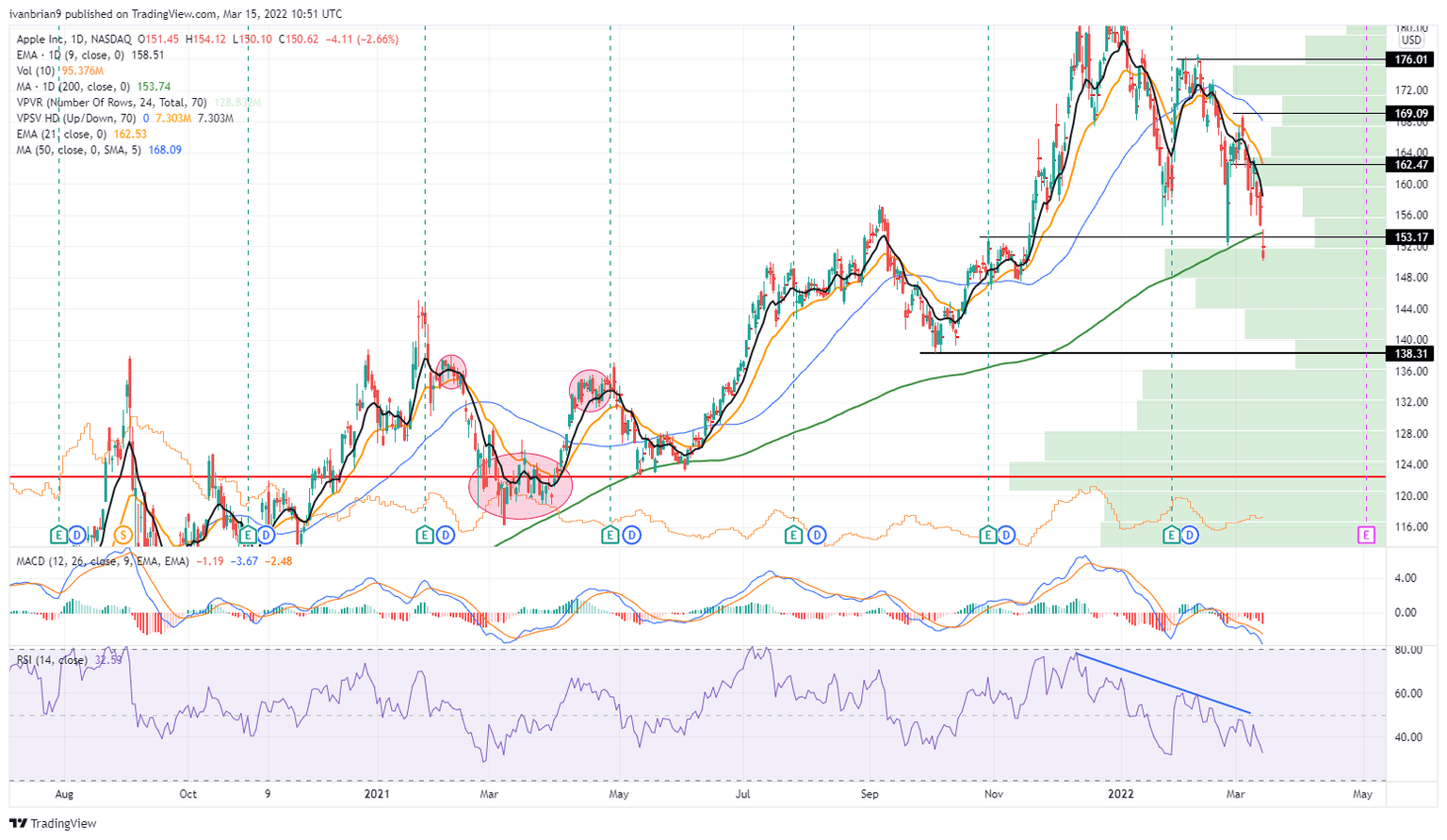 Apple (AAPL) chart, daily