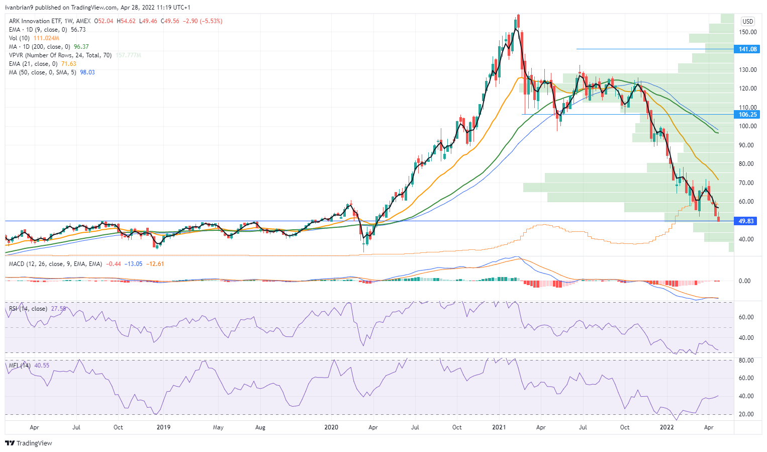 ARK Innovation ETF (ARKK) chart, weekly