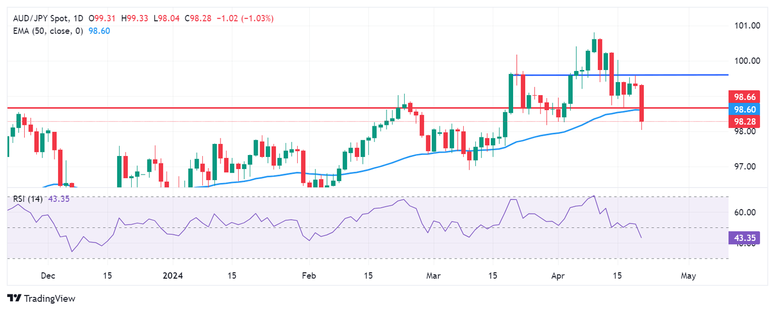 Technical Analysis: AUD/JPY remains below 99.00