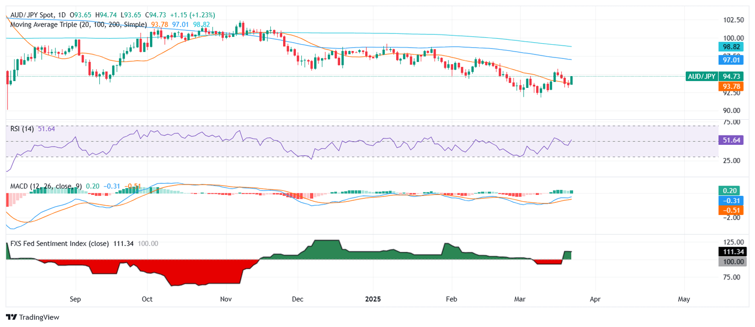 - AUD/JPY trades near the 94.70 area with strong gains ahead of the Asian session.