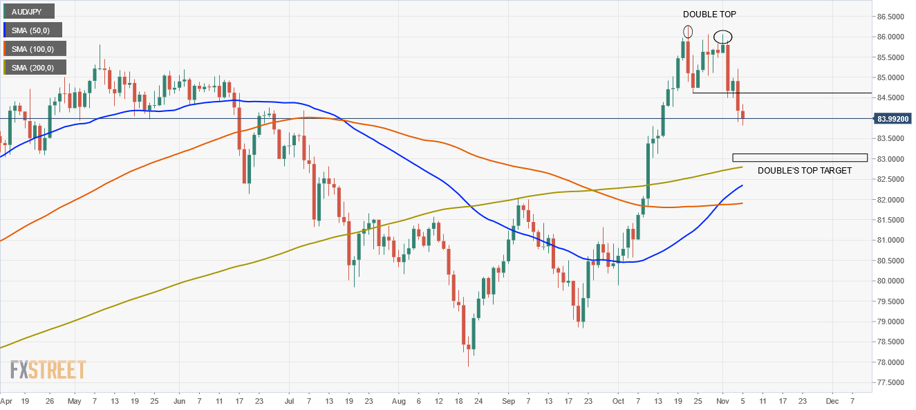 AUD/JPY Price Analysis: Double top in place, targets 83.00