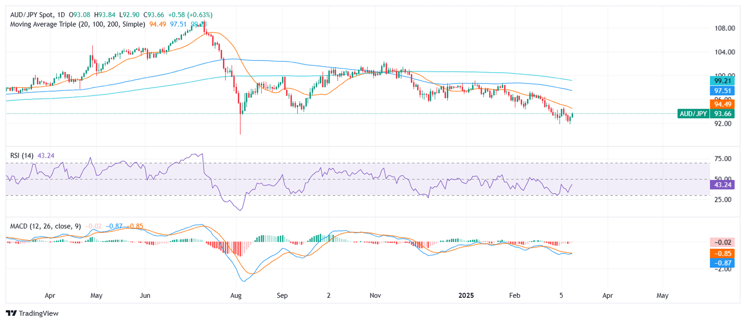 The AUD/JPY pair extended its recovery on Wednesday ahead of the Asian session, rising for the second straight day and trading near the 93.75 zone. Buyers are showing renewed interest after the recent downside, but the overall bias remains uncertain as indicators, while improving, continue to signal weakness.