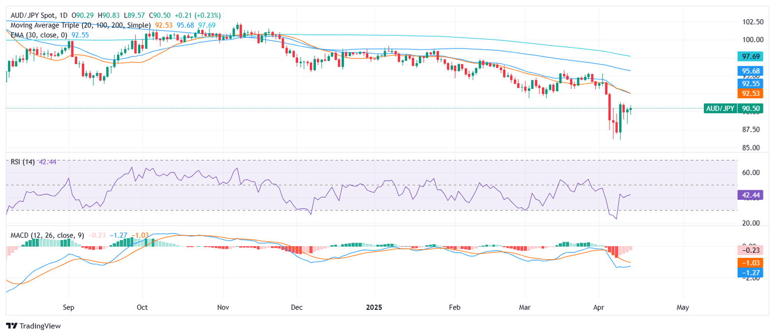 - AUD/JPY trades near the 90.50 zone with modest gains ahead of the Asian session