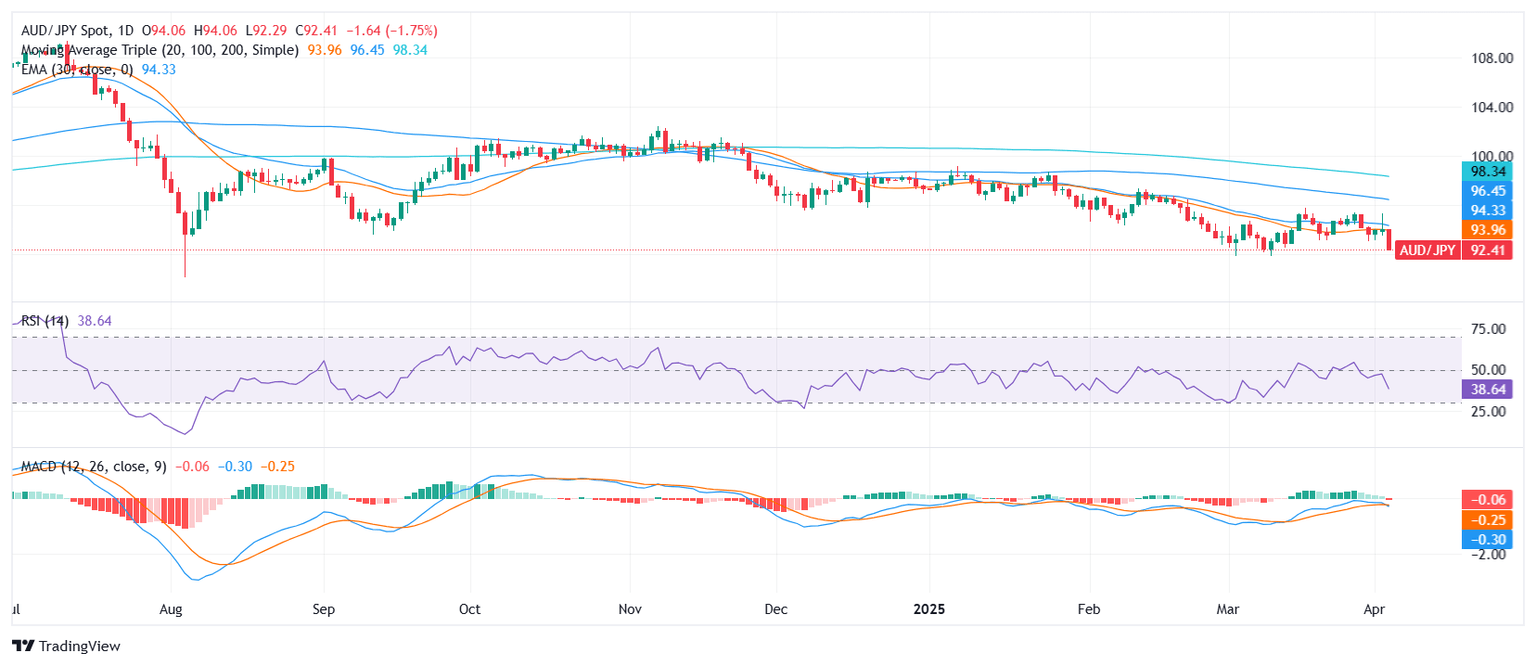 AUD/JPY Price Analysis: Pair weakens further as bears maintain pressure below 92.50