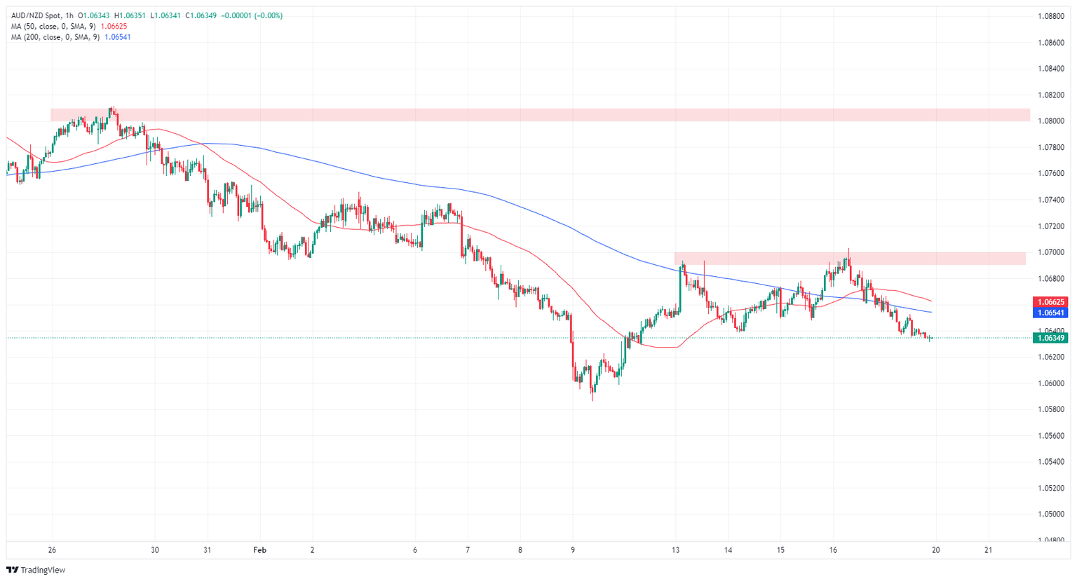 - AUD/NZD drifting into the bottom end after near-term peak at 1.0700.