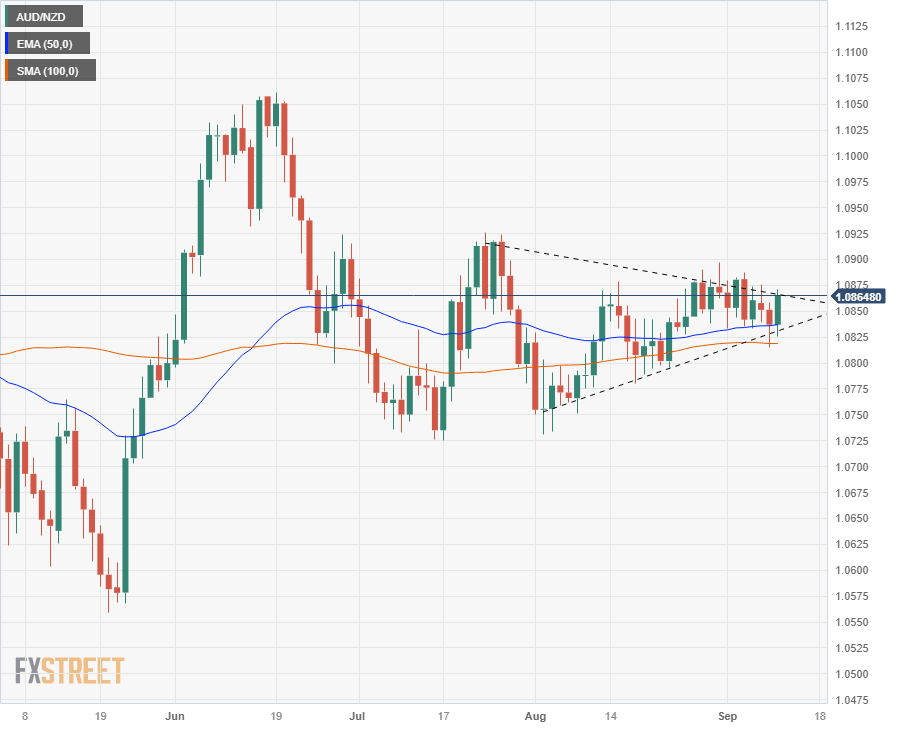 The AUD/NZD caught a bump on Monday, trading into the 1.0870 region after kicking the trading week off near 1.0840. The Aussie (AUD) has caught a minor lift back into familiar territory after drifting to a medium-term low near 1.0820 late last week, getting bolstered by improving risk sentiment from China.