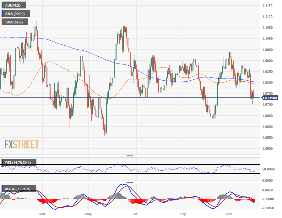 The AUD/NZD has been stuck near 1.0730 since a backslide from 1.0860 last week, and the Aussie-Kiwi pairing tumbled out of a near-term consolidation range to trade into an entirely new range just north of the 1.0700 handle.