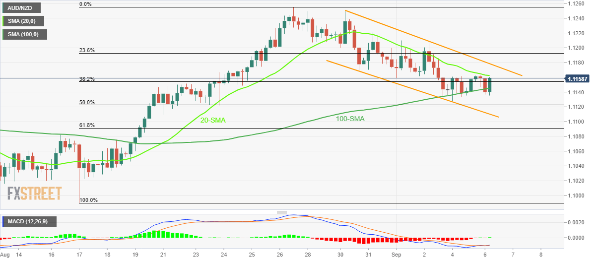 However, the 20-SMA guards the pair’s immediate advances near the 1.1165 level before directing AUD/NZD buyers towards the stated channel’s upper line, at 1.1180 as we write.