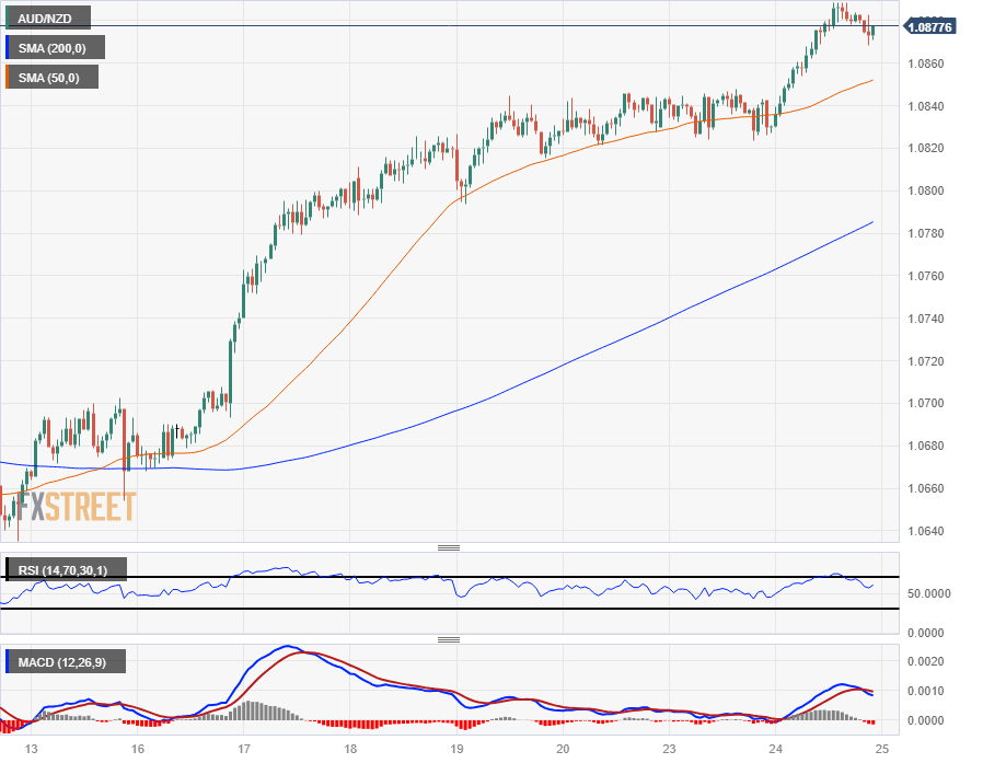 intraday trading has the pair catching some firm lift on the hourly candles, with prices consistently getting bolstered by technical support from the near-term 50-hour Simple Moving Average (SMA), currently huddled near 1.0852 after the AUD/NZD caught another rebound from the MA at the outset of Wednesday's trading.